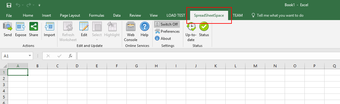 SpreadSheetSpace is ready! You can find the SpreadSheetSpace panel on the Excel ribbon.