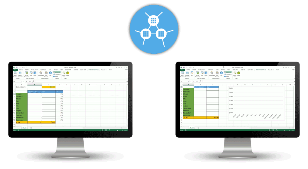 No more Multiple Versions of the Truth, no more errors due to people working on different data versions, no more copy-paste, temporary files, email messages, but just a Single Version of the Truth, direct spreadsheet synchronization, automatic/manual update, one click operation.