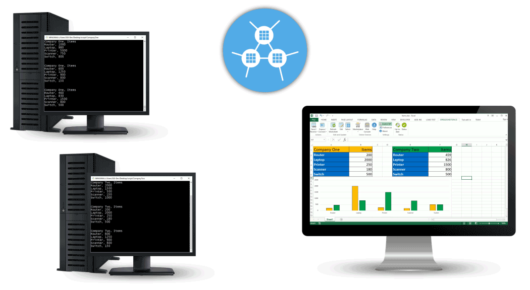 SpreadSheetSpace Sync is a secure service that allows companies and institutions to expose corporate data or open data to Excel users (employees, customers, public) and to maintain the Excel user’s spreadsheets constantly synchronized with the exposed data.